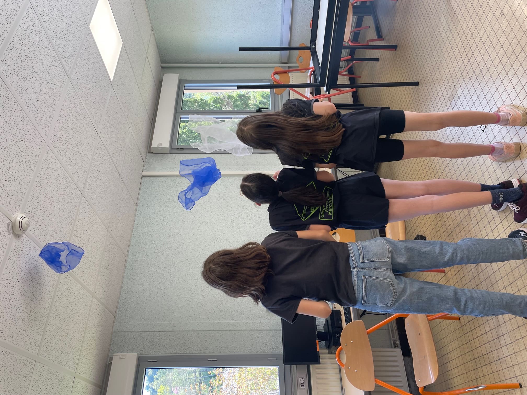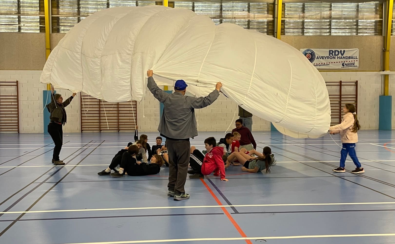 Les élèves ont pu expérimenter différentes facettes des arts vivants : marionnettes, théâtre, jonglage avec foulards, équilibre avec bambou et… un parachute...