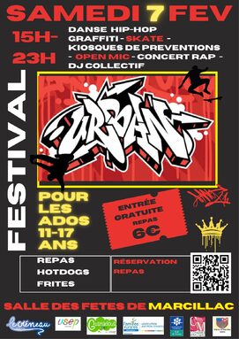 Venez nombreux à cet évènement le samedi 7/02 à Marciillac avec plein d'activités proposées (graffittis, dance hiphop, rap etc...)
