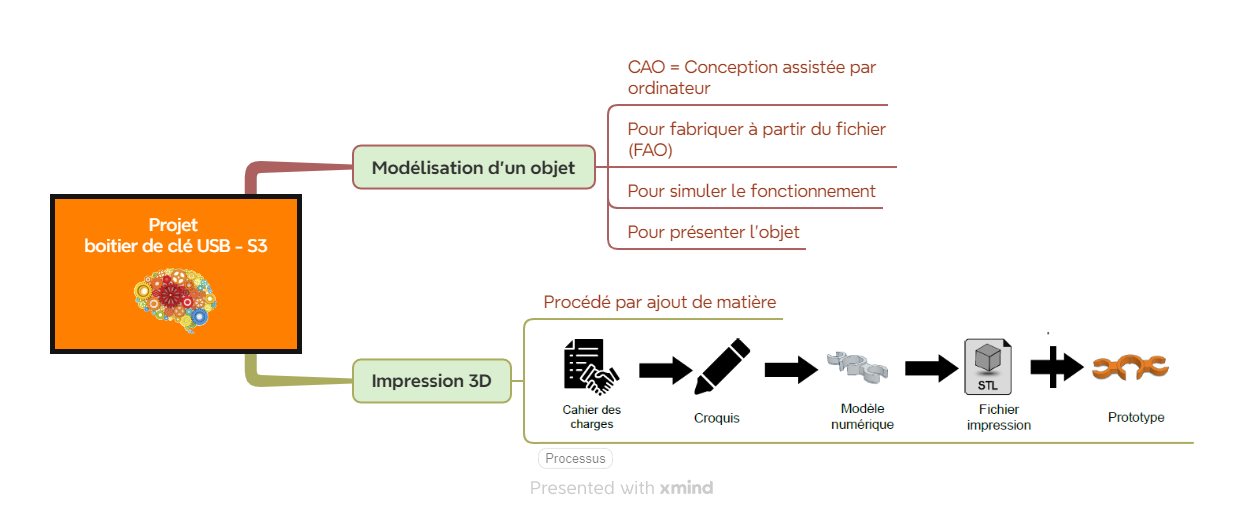 L'avant-projet de ta clé USB étant défini, il te faut maintenant présenter tes solutions à l'aide d'outils de représentation numérique et de modélisation pour aboutir à un premier prototype. |